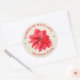 Adesivos redondos personalizados de Natal com uma elegante poinsettia vermelha com o seu nome e saudação em letras elegantes em listras de marfim. Todo o texto, fontes e cores das fontes podem ser modificados, basta clicar no link "personalizar ainda mais".