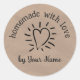 Este adesivo personalizado para latas, picles, doces e geleias, assar ou presentes e produtos caseiros parece um coração de tinta desenhado à mão sobre um fundo kraft de cor papel. Diz Homemade with Love, pelo teu nome. Adicione seu nome no modelo para personalizá-lo. Basta substituir as palavras de exemplo para personalizá-las. Você também pode alterar as palavras, fontes ou remover ou mover qualquer coisa. Certifique-se de que tudo ajustado nas linhas seguras antes de comprar. Coloque um final bonito feito à mão em todos os seus presentes personalizados com este adesivo. Veja mais etiquetas de comida, sabonete e modelos de etiquetas de loção, livrarias e outros adesivos personalizados no Lápis da Alina.