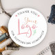 Adicione seu logotipo a este obrigado branco clássico que você colar. Diga obrigado aos seus clientes que dão suporte aos seus produtos caseiros. Faça o upload fácil do seu logotipo e edite o resultado final, se necessário. Homemade Personalizada Obrigado Classic Round Sticker.