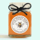Abelha de mel desenhada à mão com coração dourado no rótulo do pote circular