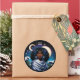 A fun horoscope sign Aquarius sticker with a pretty celestial illustration of a water bearer African-American woman in front of stars and a full moon/