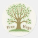 Uma árvore feliz com braços generalizados e a inscrição "Free Hugs". Camisas, cartas, presentes.