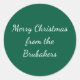 Personalize this hunter green Christmas card envelope sticker. Customize the elegant white calligraphy script. Merry Christmas from then add your family name. This round holiday sticker matches this collection of Christmas cards and envelopes.