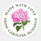 O texto sérvio clássico circunda uma ilustração antiga de uma tradicional flor rosa de hydrangea neste estilo bonito, milenar, etiqueta adesiva de presente. Personalize o texto para compartilhar um nome comercial ou informações pessoais em seus produtos feitos à mão ou como uma maneira elegante de dar presentes feitos com amor aos seus amigos e familiares.