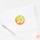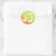Um ícone de nota musical em um fundo verde e laranja. Esta design parece realmente eficaz nestes adesivos