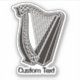 Ícone harpa preto e branco com decoração de nó celta. Texto Personalizado.