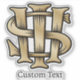 IHS interwoven byzantine letters. Christogram symbolizing the name of Jesus Christ. Custom text.