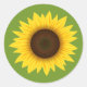 Este adesivo mostra a ilustração de desenho de Destei de um girassol amarelo e castanho florescente. A cor de fundo é verde.