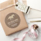 Um fundo de couro falsa toma o olhar de uma sela para mostrar uma impressão de um cavalo correndo neste adesivo equestre. A imagem é simples, mas eficaz com um nome, descrição e informação de contato por baixo do cavalo ligeiramente transparente. Disponível com produtos correspondentes. com