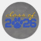 Adesivos de Círculo de Graduação em Quadro de Giz com Impressão de Pata Amarela Azul e Dourado. Perfeito para selo de envelope ou adesivo de favor!
