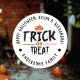 Vinheta Impressão Clássica Redonda De Halloween Branco "Trick Or Tratat". Use este adesivo de férias com prazer ou dê a alguém!