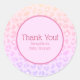Um obrigado rosa e giro-arco-íris que imprime o leopardo temido, que você cola para o seu chá de fraldas temático da selva! Esses adesivos redondos são personalizáveis e permitem que você edite e personalize o texto. Este design apresenta a impressão digital em arco-íris e o texto personalizado!