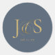 Esta suíte de casamento com seus florais exuberantes e dramáticos de branco cremoso a rosa pincelado, sotaques dourados e belos e poeirentos fundos azuis, cria uma vibração elegante e romântica, dando apenas uma dica do que os convidados podem esperar no seu grande dia. Este design de adesivo favorito minimalista fornece uma modelo para adicionar facilmente suas iniciais e a data do casamento em ouro, em um fundo azul escuro. Procure ID1022 para ver todos os produtos nesta suíte de casamento.
