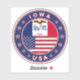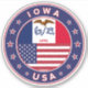 Design de Iowa com bandeira de Iowa e bandeira dos Estados Unidos, forma arredondada. Autocolante de Iowa, adesivo de bagagem de Iowa, adesivo de viagem de Iowa,
