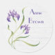 Flor da íris roxa sobre fundo de madeira lavada em branco.\ O nome é editável.