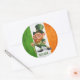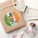Num pano de fundo que tem as cores da bandeira irlandesa, mantém-se elegante, inclinado sobre uma bengala e sorrindo, com o seu mal nos olhos, um Leprechaun irlandês. Ele veste a roupa tradicional irlandesa de duende, isto é, chapéu verde, casaco verde, calças verdes, meias listradas. Sua barba - sem bigode - e fios de cabelo são laranja e seus ouvidos são pontiagudos. O seu país de origem, a Irlanda, está escrito debaixo dele. Para os nossos amigos irlandeses, ou para todos aqueles que amam a Irlanda! P.S. Procure também por outros designs correspondentes..!