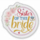 Celebre o vínculo que floresce além do lançamento do buquê. Este adesivo lindamente ilustrado apresenta a frase "Irmã da Noiva" em letra cursiva vermelha, azul e dourada, rodeada por rosas cor-de-rosa suaves, anéis cintilantes e corações espalhados. É uma homenagem terna à irmandade, apoio e alegria de compartilhar o dia do casamento. Perfeito para planejadores, presentes de chá de panela, lembranças ou decoração de festa de despedida de solteira - porque fazer parte da história da noiva é uma história de amor por si só.