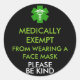 Exiba este crachá somente se estiver legitimamente isento de vestir uma máscara ou outro revestimento facial de acordo com as leis e diretrizes locais. Vestir uma máscara onde e quando você for capaz ajuda a retardar a propagação e salvar vidas.