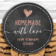 Tipografia de nome com script sofisticado. Adesivos de etiqueta comercial. Todo o texto é ajustável, se necessário. Ideal para sabonetes, velas, bálsamos labiais, cremes para as mãos, geleias, guloseimas assadas e outros produtos artesanais. Fundo rústico de quadro negro.