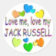 Os amantes de Jack Russell podem compartilhar seus verdadeiros sentimentos sobre seu cachorro com esse Amor, amar meu design colorido Jack Russell com corações.