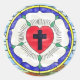 O simbolismo de Luther, o Rosa, data dos anos 1520. Luther explicou que o coração vermelho com a cruz negra representa o justo vivendo pela fé no Cristo dos Crucificados. O coração repousa sobre uma rosa branca, simbolizando a alegria, o conforto e a paz encontradas através da fé. A escolha do branco reflete a cor dos espíritos celestiais e anjos. A rosa branca é colocada contra um campo azul, representando o céu, para significar que alegria e fé terrestres são apenas o começo da eterna alegria celestial. Ao redor do campo azul está um anel de ouro, simbolizando a felicidade infinita e precioso do céu.