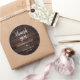 Modern Wedding Rustic Obrigado Presente O favorito clássico Round Sticker, em roteiro limpo, pequeno coração vermelho, com assinatura de noiva e noiva e data de casamento, tema de madeira marrom caseira.