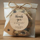 Modern Wedding Rustic Obrigado Presente O favorito clássico Round Sticker, em roteiro limpo, pequeno coração vermelho, com assinatura de noiva e noiva e data de casamento, tema de madeira marrom caseira.