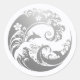 Experience the perfect harmony of traditional Japanese art and tropical Hawaiian vibes. This elegant circular sticker features a stunning Silver "Seigaiha" (great wave) accented with delicate hibiscus-style blossoms and playful dolphins.