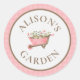 Elegante adesivo redondo clássico Gingham Gingham Watercolor, colorido, Coloque um toque de elegância com este design cor-de-água rosa com acentos de gingham. Perfeito para empresas de decoração ou jardinagem, inclui elementos florais delicados em matizes cor-de-rosa suave e um charmoso padrão de gingham, criando uma atmosfera serena e feminina. *Nota: Clique em "Editar" para personalizar.
