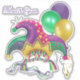 Vinheta autocolante com uma imagem festiva de balões verdes, roxos e dourados, um grande chapéu de pimenta e balão de máscara, e miçangas verdes e roxas. Veja o adesivo redondo correspondente, confetti, convite, bolsa de favor, caixa de favor, etiqueta de favor, sacos de presentes, etiqueta e papel de embalagem. Veja toda a coleção do Mardi Gras Sticker nos CONVITES | Seção Stickers & Labels