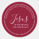 Jesus é o motivo da temporada. Personalize este adesivo com seu nome ou texto personalizado. Compartilhe o motivo da temporada com este na moda, simples e elegante adesivo. Este presente festivo vermelho de morango cristão de festas ou vinheta de envelope é lindo. "Jesus" é escrito em escrituras modernas com "a razão da temporada" em elegante tipografia simples. A cor do texto é branca sobre fundo vermelho profundo. Meu Deus. O presente de Deus. Chegou à Terra no Natal. Seria bom para grupos de igrejas e grupos de estudo de Bíblias e uma família cheia de fé. O script minimalista é editável. Não se esqueça de personalizar com seu nome no topo.