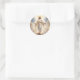 O adesivo redondo é mostrado com um impressão de arte de Jesus em sua glória. Vinheta pequena mostrada. Personalize este item ou comprar como está. Imagem licenciada