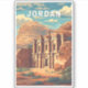 Jordan retro vector travel design. From the iconic rose-red city of Petra and the vast Wadi Rum Desert to the Dead Sea and historic ruins of Jerash, Jordan offers a journey through history, adventure, and natural beauty.