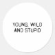 Design engraçado com a citação "Jovem, selvagem e estúpido".