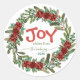 Adesivo Joy Handwritten Script Name Red Christmas Wreath
