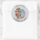 Este autocolante comemorativo celebra o Ano Jubilar 2025, marcando um aniversário especial de graça, renovação e comunhão na Igreja Católica. Apresentando um logotipo simbólico, representa um apelo à peregrinação e à unidade no Cristo.