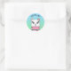 Este adesivo apresenta Katie Cat, um gato fofo com olhos de gato expressivos e grandes e longos pretos. Katie Cat está vestindo um vestido cor-de-rosa de duas tonalidades enfeitado com um cinto verde pastel. Ela está vestindo uma flor rosa em seu cabelo e há um padrão floral em seu vestido. Ela está segurando um cone de sorvete com uma cereja vermelha em cima. "Katie Cat" é escrita em negrito letra maiúscula e arqueada sobre sua cabeça, mas você pode personalizar este texto com seu próprio nome ou um ditado especial como "Feliz Aniversário" ou "Obrigado" por festas de aniversário temidas de gatos. Katie cat é colocada sobre um fundo de gradiente azul claro e verde claro para dar a impressão de que ela está em um campo.