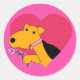 Adesivo Kawaii Airedale Terrier Dog W Rosa Sticker