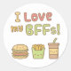 Proclame seu amor por seus amigos com este design de rabiscar kawaii! O texto diz "Eu amo meus BFFs!" com a letra O decorada com um pequeno coração. Em vez do melhor amigo para sempre, significa hambúrguer, Fries franceses e Soda! Para quem ama rabiscos coloridos e comida de lixo ou comida rápida!