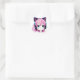 Garota Kawaii bonita com fones de ouvido e orelhas de gato, colantes rosas e azuis.