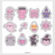 Reúna o seu próprio esquadrão do Monstro do Pastel Kawaii com este encantador e elegante pacote de adesivos! Esta coleção encantadora apresenta 12 designs únicos, transformando os fantasmas clássicos do Halloween em personagens irresistíveis e fofinhos com uma estética vibrante rosa e roxa. Vocês vão descobrir criaturas adoráveis como uma múmia rosa doce, um monstro amigo do Frankenstein, um monstro branco de três olhos, e um fantasma rosa fofo. Além disso, encontram elementos encantadores como uma casa roxa assombrada, uma varinha mágica, um milho doce clássico com um arco, uma teia rosa detalhada com uma aranha, um caldeirão borbulhante, uma garrafa de poção cheia de coração, um charmoso gato-bruxa preto e um doce vampiro rosa. Esses decais de vinil de alta qualidade são perfeitos para personalizar laptop, garrafas de água, planejadores, revistas ou adicionar um toque único aos artesanatos e decorações dos góticos pastéis.
