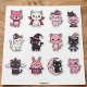 Libere seu amante interior de gatos com este adorável Kawaii Spooky Cat Sticker Pack! Esta coleção encantadora apresenta 12 designs únicos, mostrando um grupo irresistível de amigos felinos prontos para o Halloween com uma deliciosa estética rosa, roxa e pastel preto. Vocês vão descobrir personagens caprichosos como um doce gato-do-mato-rosa, um gatinho-vampiro giro, um gato-do-diabo malicioso, e um gato-preto empobrecidos numa lanterna de abóbora. Além disso, encontram variações encantadoras, incluindo um gato bruxa branco, um gato bruxa preto, um gato rosa bonito, outro gato preto giro numa fantasia de bruxa, um gato preto alado com uma abóbora, um coelho vampiro, um gato preto numa lua crescente e um gato rosa com olhos apertados. Esses decais de vinil de alta qualidade são perfeitos para personalizar laptop, garrafas de água, planejadores, revistas ou adicionar um toque único aos artesanatos e decorações dos góticos pastéis.