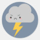 Corajoso trovão e nuvem de raios contra um céu azul/cinza tempestuoso.