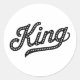 A bold and stylish “King” typography design in an elegant vintage script style.