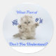 Gato bonito com atitude. O produto diz "Que parte da minha comida você não entende?" Excelente para amantes de gatos.
