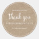 Kraft Chic Script Thank You For Shopping round sticker featuring a natural kraft paper background with white script lettering and a clean minimalist border. A warm, rustic accent for handmade packaging, small business orders, and eco-inspired branding. Easily personalize with your details.
