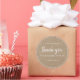 Kraft Chic Script Thank You For Shopping round sticker featuring a natural kraft paper background with white script lettering and a clean minimalist border. A warm, rustic accent for handmade packaging, small business orders, and eco-inspired branding. Easily personalize with your details.