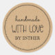 Kraft Feito com Amor Adesivo Redondo Clássico - efeito de papel kraft