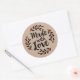 Um adesivo personalizado "feito com amor" de 3 polegadas em um fundo colorido kraft. Possui uma bonito coroa de morango e as palavras "feito com amor" em uma letra elegante. Um bonito toque final para todos os presentes feitos à mão. Projetado para você pelo Blackberry Boulevard.