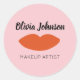 Um adesivo minimalista perfeito para designs de negócios de chic para maquiador, salão de beleza, pregador, belicista etc. Apresentando uma ilustração de lábios vermelho-esquisita num fundo estético pastel. Cartões de visitas profissionais para maquiadora masculina e feminina. Beleza, prego, estética makeuo, estética, estética, abstrato cor-de-rosa.